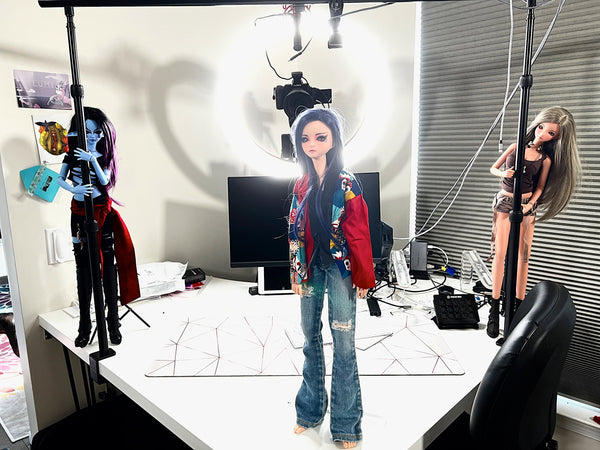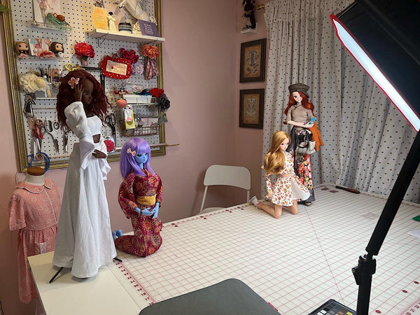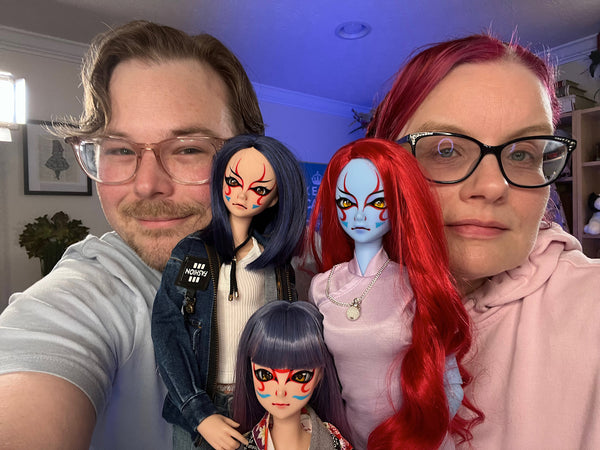 Sandee and John discovered Smart Doll in the middle of the pandemic. Coming from a background in theater and visual arts, they were deeply missing their creative outlets and sense of community. Sandee thought of all the beautiful costumes she could make for Smart Doll that she wouldn’t attempt on humans. John was excited by the endless possibilities for photography and story-telling. They immediately bought two dolls, one for each.