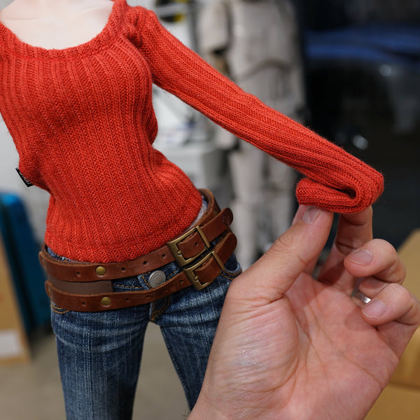 This sweater goes well with short or long bottoms and looks best with the new Medium Smooth and Large type busts too. To wear this item underneath a jacket, remove the hands and fold the end of the sleeve before pushing the arm down the jacket sleeve. Goes well with the Military Field Jacket.