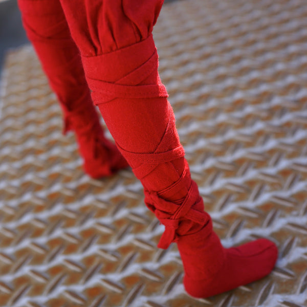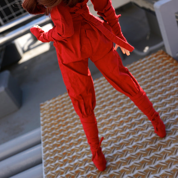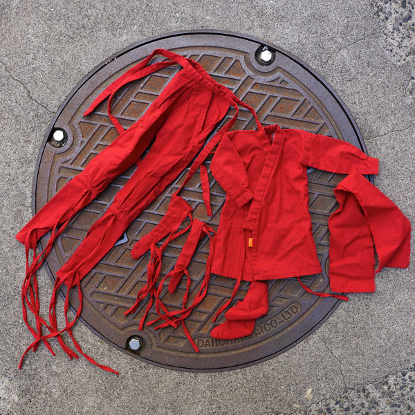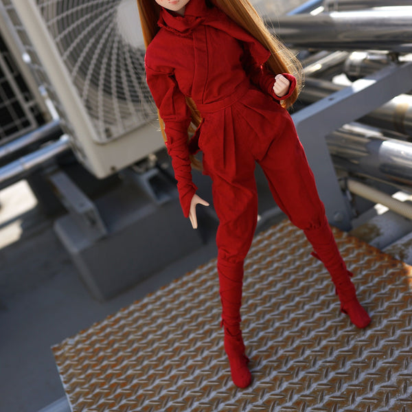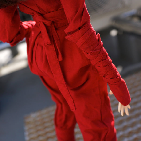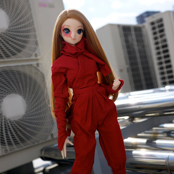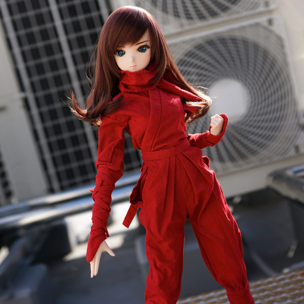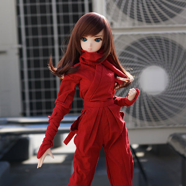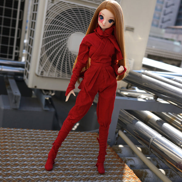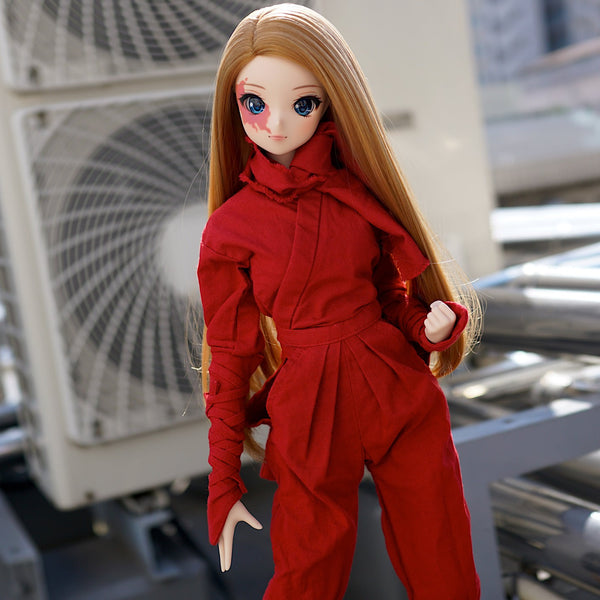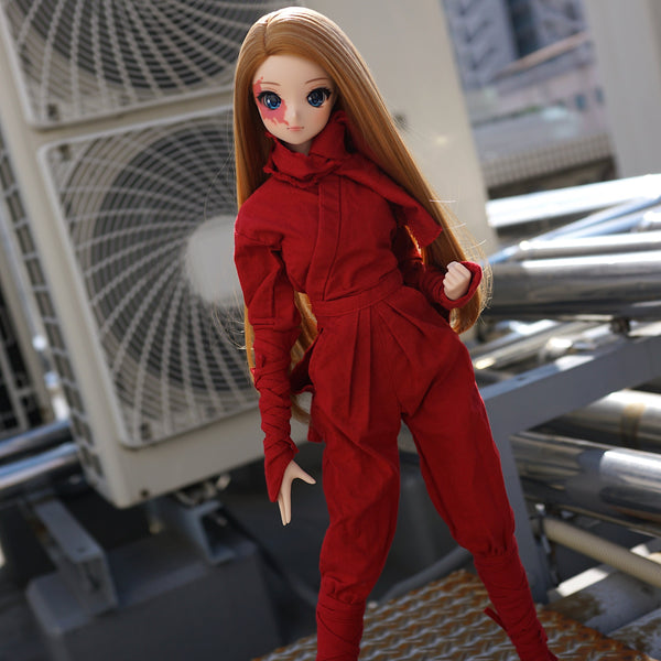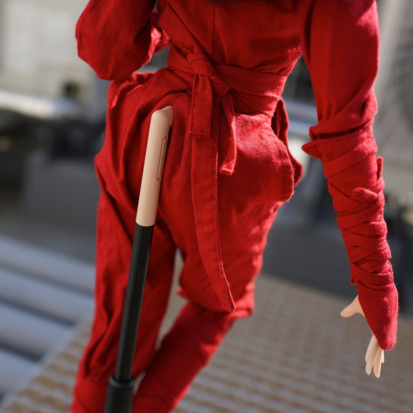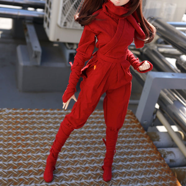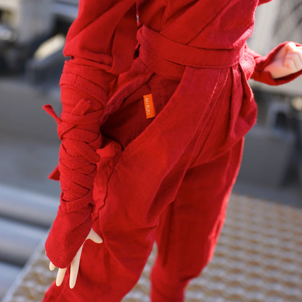 This is the red version of the Ninja Uniform that we released back in 2017 and just like then, this is a very small quantity due to material sourcing and the amount of work that goes into making it. The material didn't stain back then and it shouldn't stain this time round either - if it does I will send you a new body for your Smart Doll.