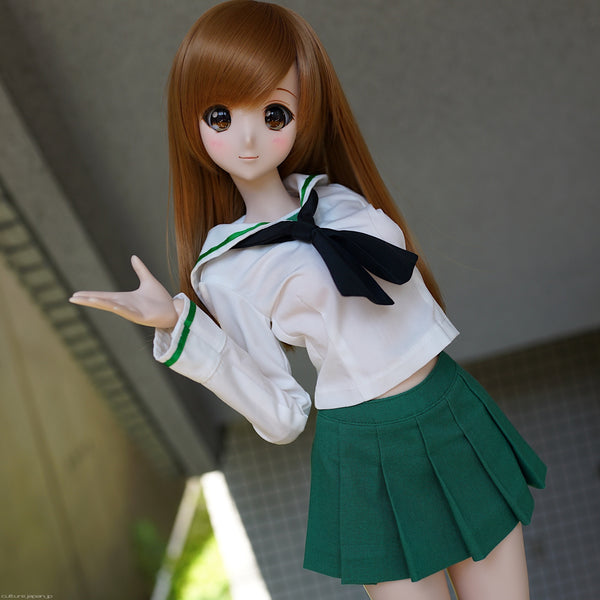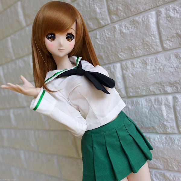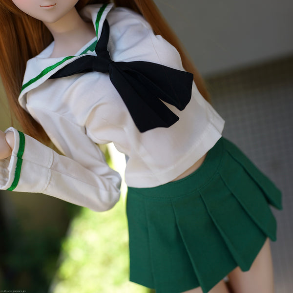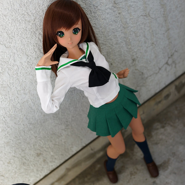Its time to break out the bubbly because the uniform worn by the girls of Girls Und Panzer is now available to buy separately and can be worn by Smart Doll girls in S bust. Included with the uniform is the blouse, scarf, skirt and socks. Loafers are sold separately though.