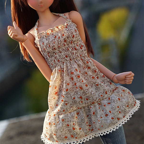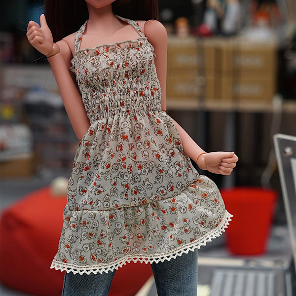 Shirred One Piece Dress - fits S to L bust. Looks great with the default jeans.