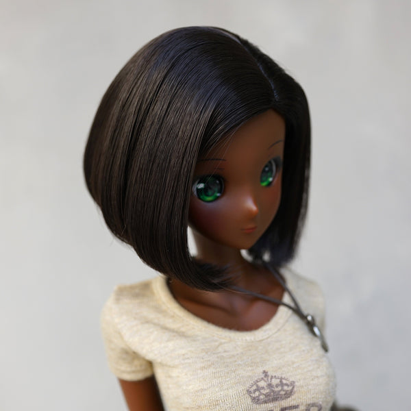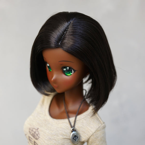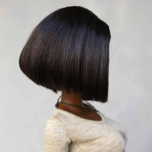 黒人のファッションドールが今まで存在しなかったため、つむじが黒いウィッグは存在しない!このため、弊社で開発したウィッグはつや消し黒い塗料でつむじを塗っています。塗料は最初多少指に付着することがありますが、ウィッグキャップはミルク色のため、本体に付着することはない。