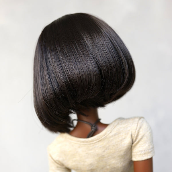 Due to the lack of manufacturers making black dolls, no wig maker makes wigs with black silicone parting lines - they all come in white! For this reason, we use a mix of matte coat with black ink on the parting line - some of it may smudge off on your finger. The wig cap remains a slight tea color though but its covered by the wig. The wig cap remains milk to avoid staining.