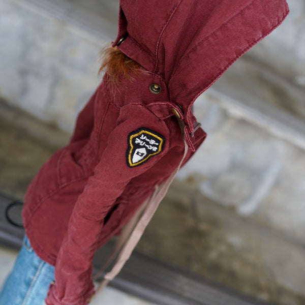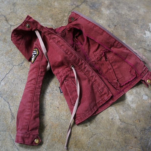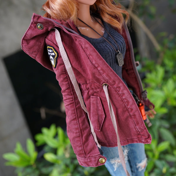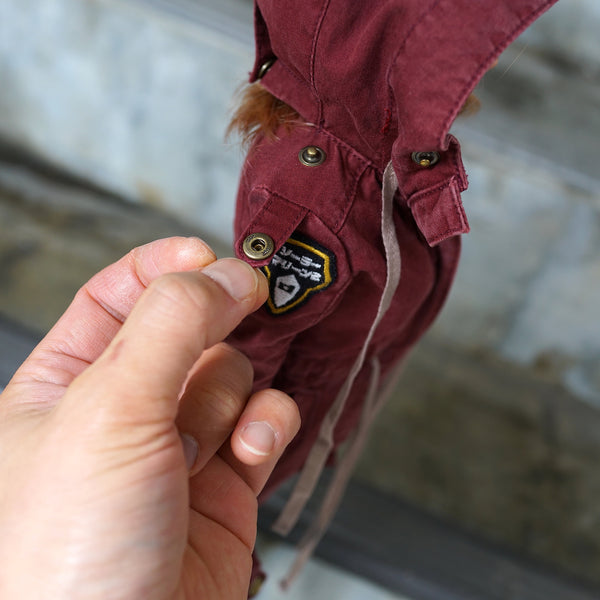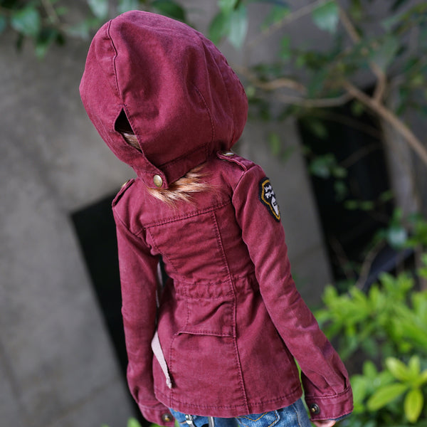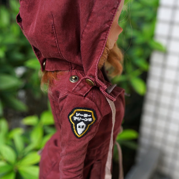 Designed by @maruko_halu and our in-house design team, the jacket went through a few design iterations but was put on hold for a few months because I couldn't figure out how to manage long hair that would sprout outwards as it rested on the hood. Then I thought of the obvious - just put an opening in the back of the hood to pass the long wig through.