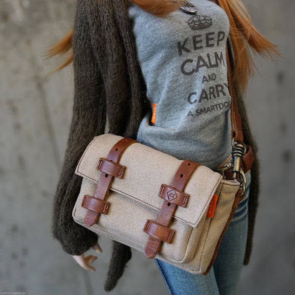 The bag has been given a slightly used look which goes well with our casual line of apparel.
