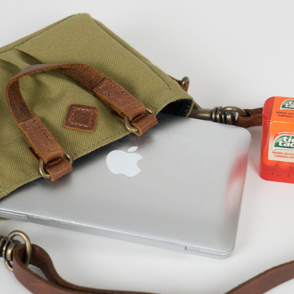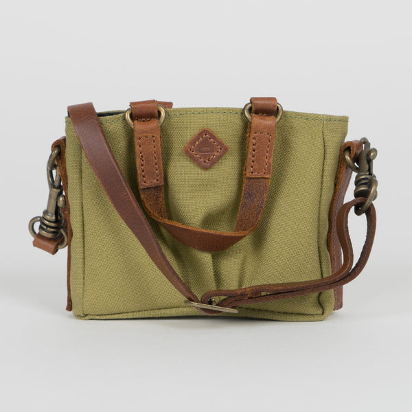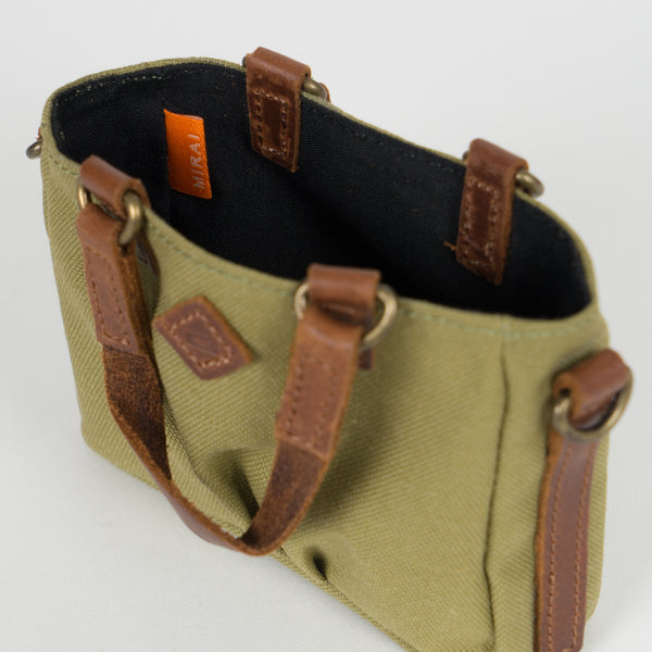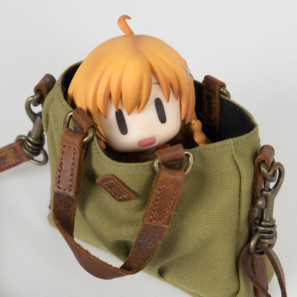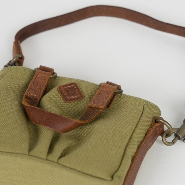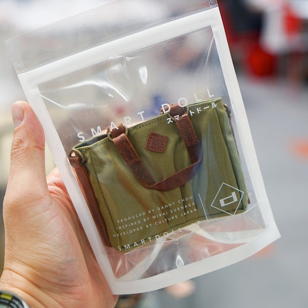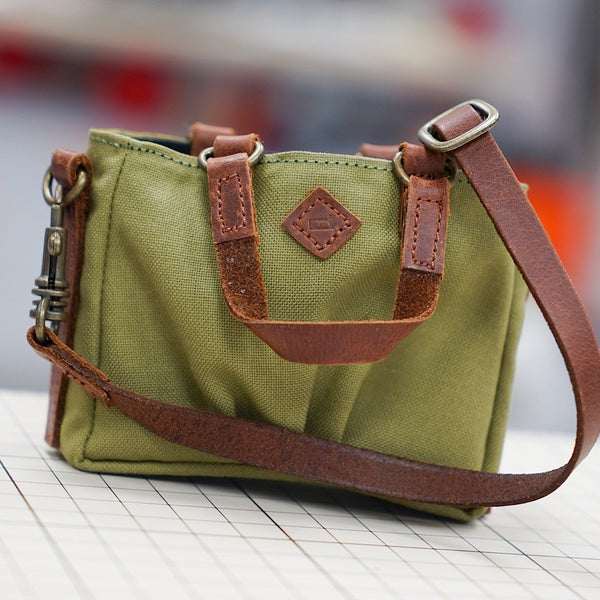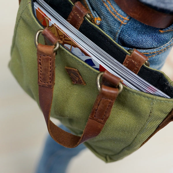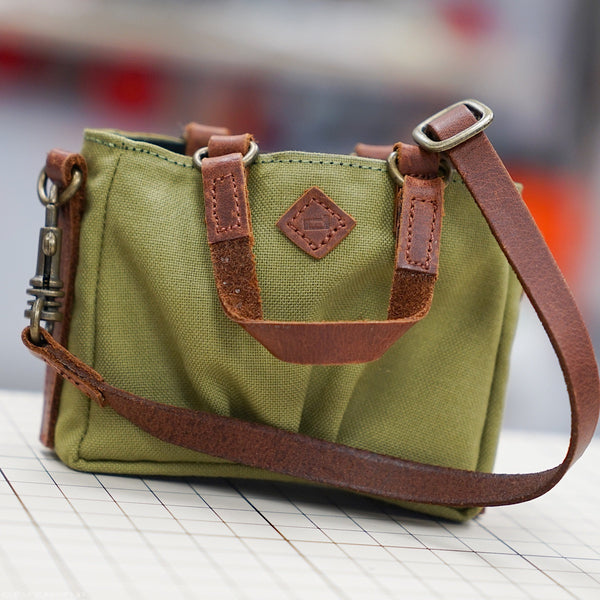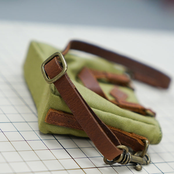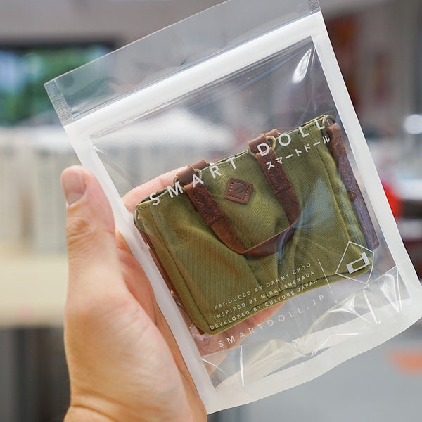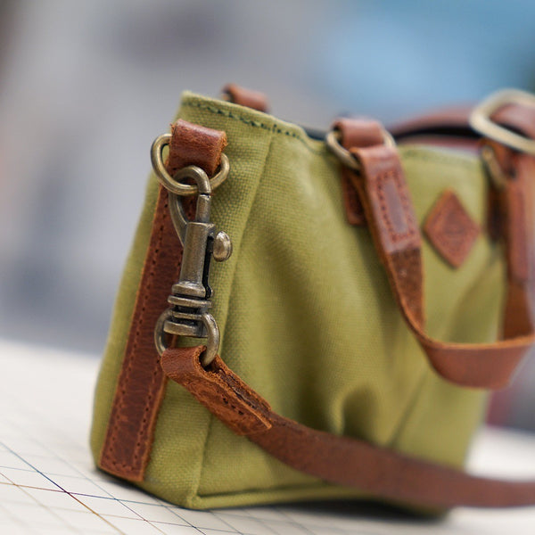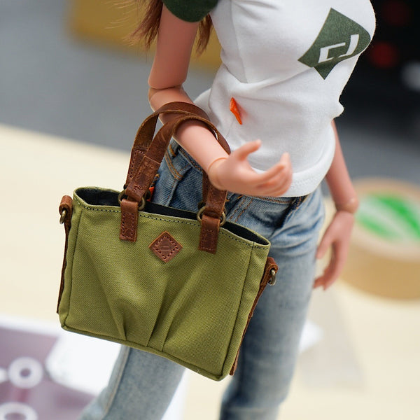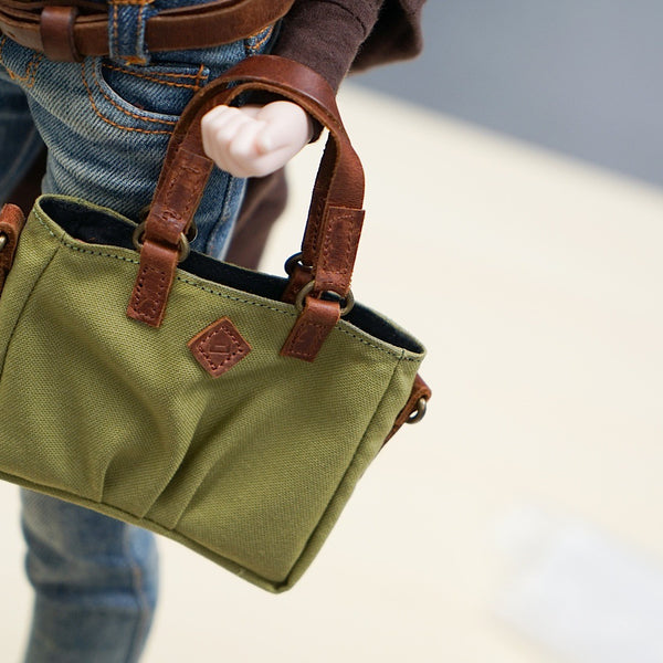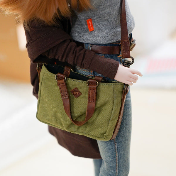 Green Weathered Satchel Bags for Smart Doll. Bag body is made of cotton while the straps are leather.