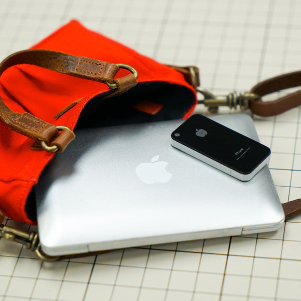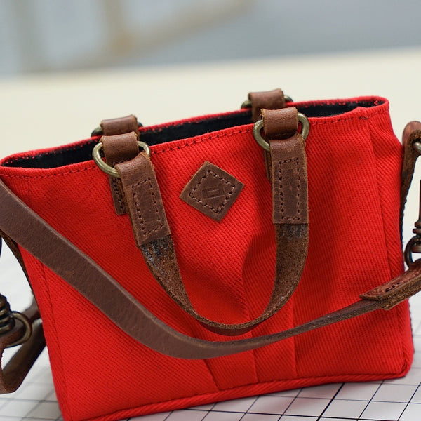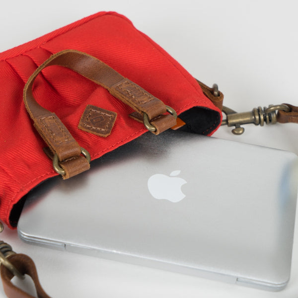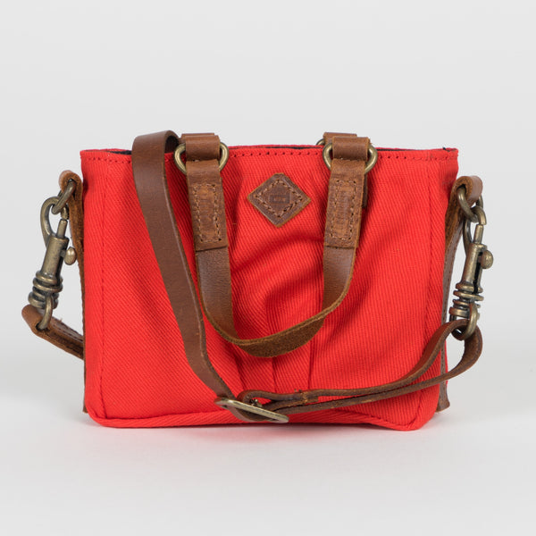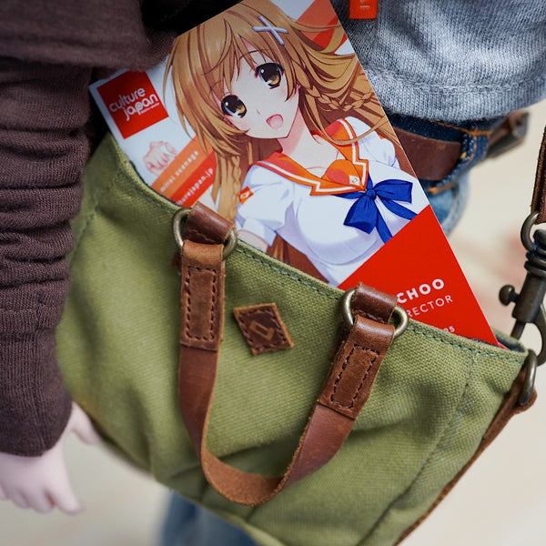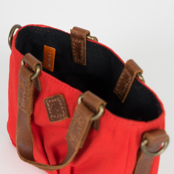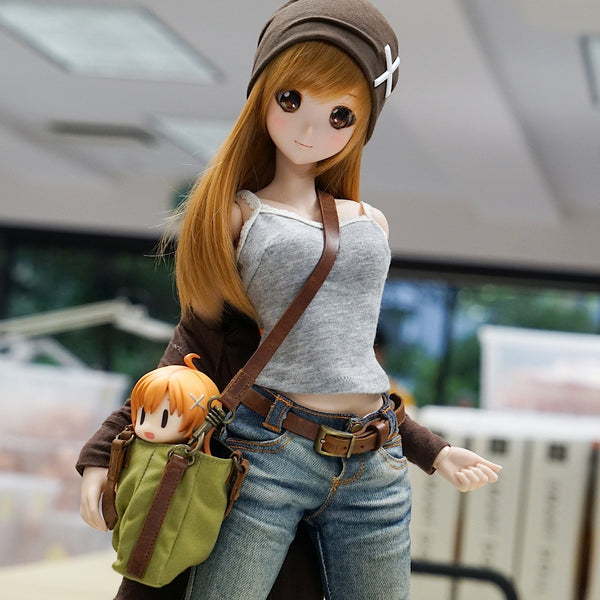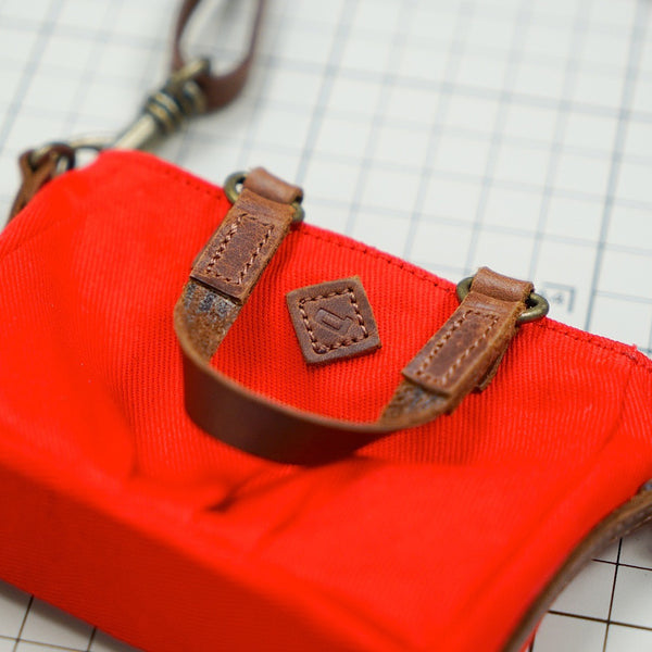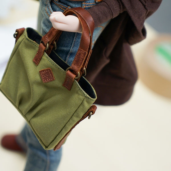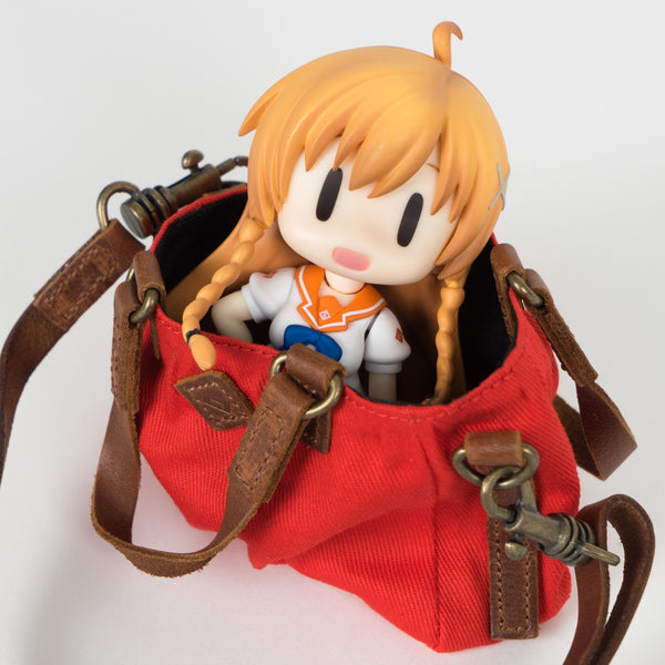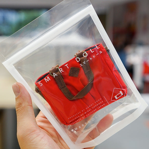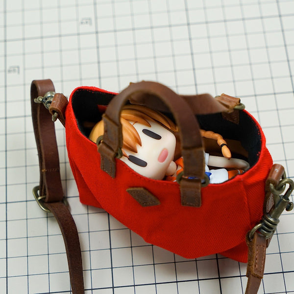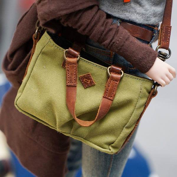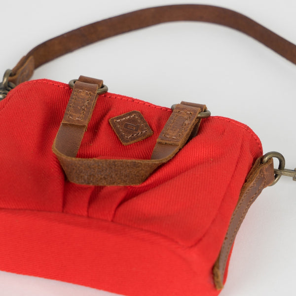 Red Weathered Satchel Bags for Smart Doll. Bag body is made of cotton while the straps are leather.