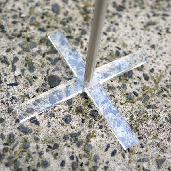 The Gunmetal version is made of aluminium (base and outer pole) which is protected with a coat of Alumite. The Acrylic version is made of (surprise surprise) acrylic (base) while the outer and inner pole is made non coated aluminium.