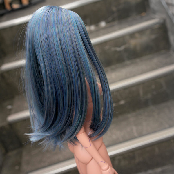 This version of Ends of the Earth includes the Parting Straight Blue Metal wig. Please note that our wigs are curled up in the wig bag, which may cause a slight curl initially. However, the wig will straighten out over time.