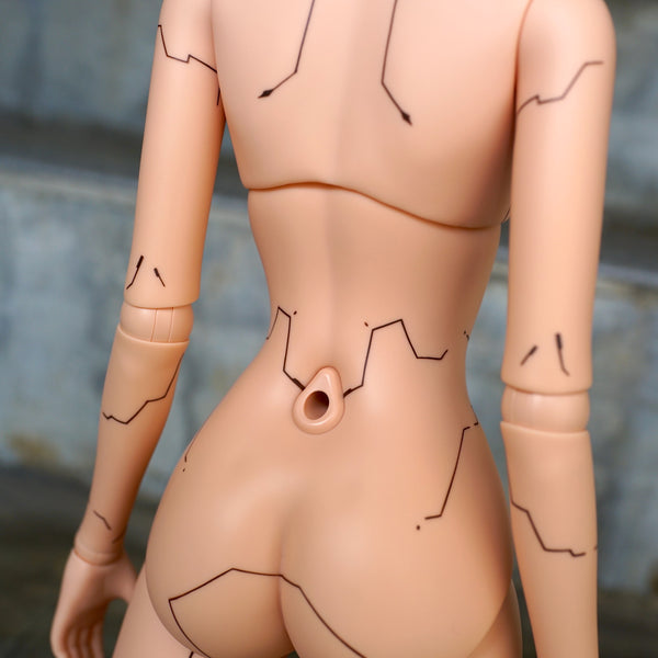 We're contemplating the release of a simplified version with fewer panel lines, particularly on the back and in areas typically covered by pants and a camisole. This alternative would allow us to increase production while maintaining a cybernetic aesthetic for those who plan to dress their dolls in at least the bare essentials.