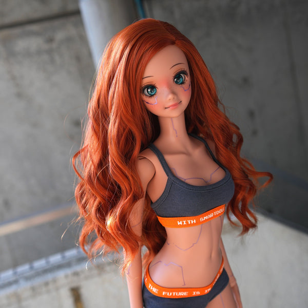 Smart Doll wigs are shaped by hand—not by mold—so variation is natural. You may notice differences in thickness, alignment, or shape from one wig to the next. Some may appear “balding” in spots or shed small amounts of hair when first opened and with continued use. Tight fits can leave marks on the head, and a bit of styling oil residue is also expected. (images 1 - 4)