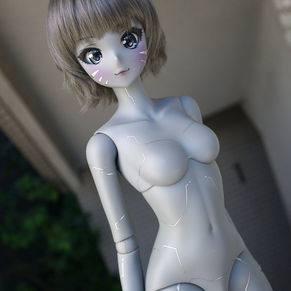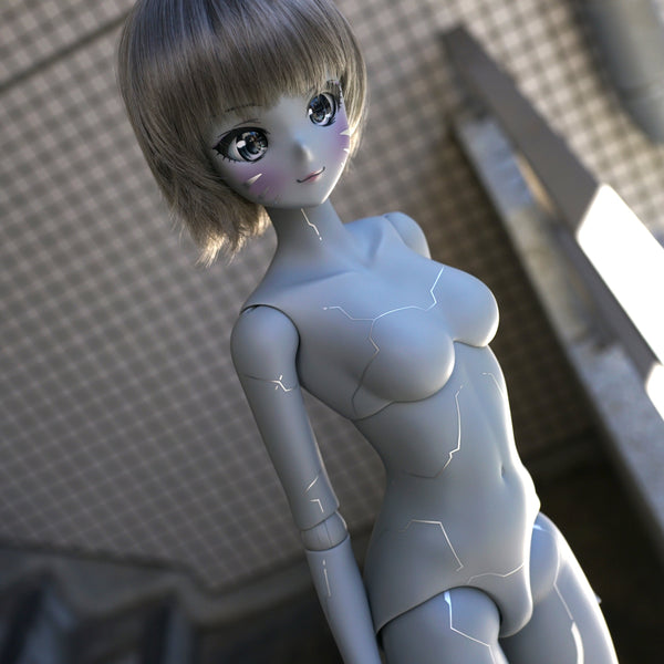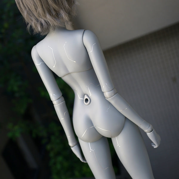 We're contemplating the release of a simplified version with fewer panel lines, particularly on the back and in areas typically covered by pants and a camisole. This alternative would allow us to increase production while maintaining a cybernetic aesthetic for those who plan to dress their dolls in at least the bare essentials.