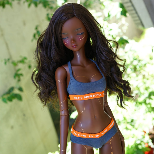 We're contemplating the release of a simplified version with fewer panel lines, particularly on the back and in areas typically covered by pants and a camisole. This alternative would allow us to increase production while maintaining a cybernetic aesthetic for those who plan to dress their dolls in at least the bare essentials.