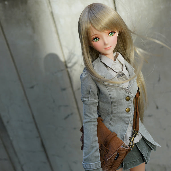 The first row covers wig-related traits, the second explains details of our slush-cast vinyl body and frame, and the third focuses on the intentional asymmetry in our face design. A brief overview follows the grid below: