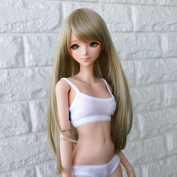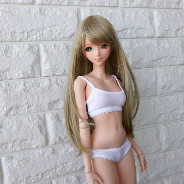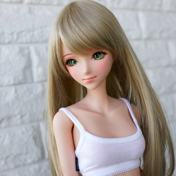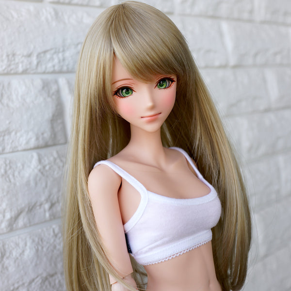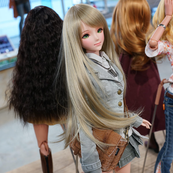 Smart Doll wigs are shaped by hand—not by mold—so variation is natural. You may notice differences in thickness, alignment, or shape from one wig to the next. Some may appear “balding” in spots or shed small amounts of hair when first opened and with continued use. Tight fits can leave marks on the head, and a bit of styling oil residue is also expected. (images 1 - 4)