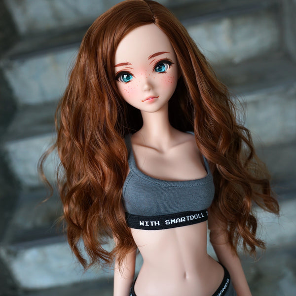 Smart Doll wigs are shaped by hand—not by mold—so variation is natural. You may notice differences in thickness, alignment, or shape from one wig to the next. Some may appear “balding” in spots or shed small amounts of hair when first opened and with continued use. Tight fits can leave marks on the head, and a bit of styling oil residue is also expected. (images 1 - 4)