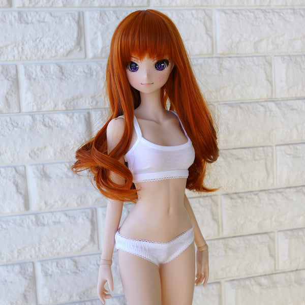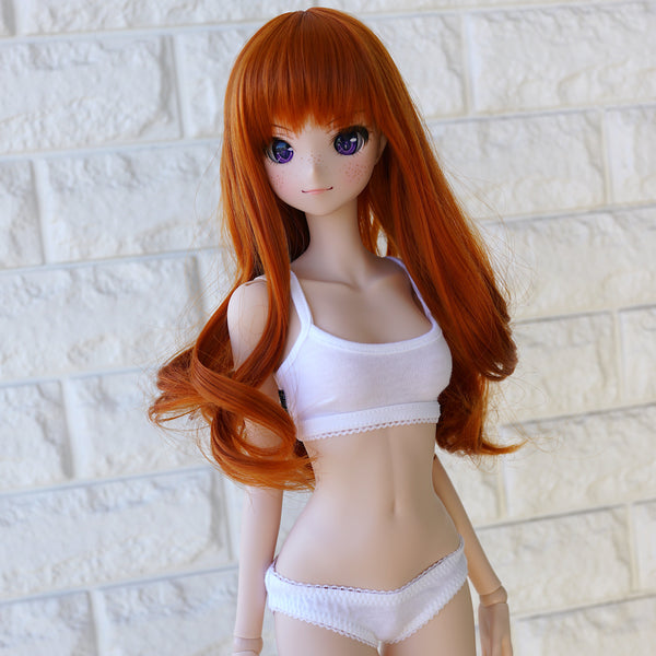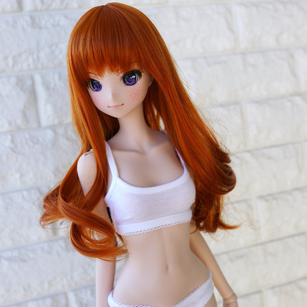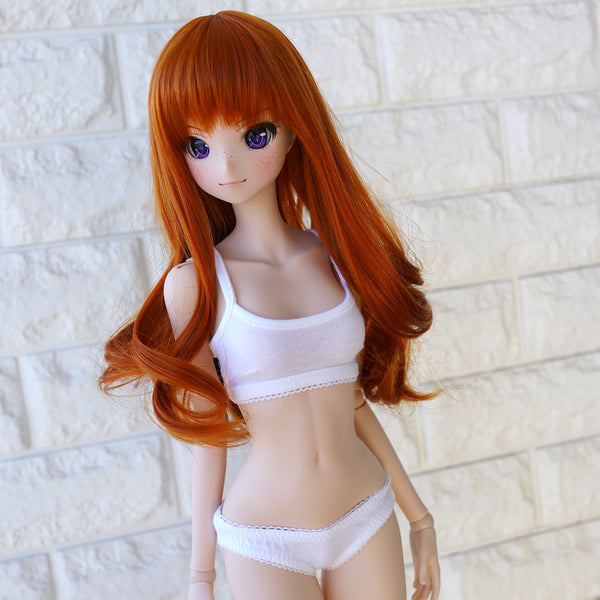 Smart Doll wigs are shaped by hand—not by mold—so variation is natural. You may notice differences in thickness, alignment, or shape from one wig to the next. Some may appear “balding” in spots or shed small amounts of hair when first opened and with continued use. Tight fits can leave marks on the head, and a bit of styling oil residue is also expected. (images 1 - 4)