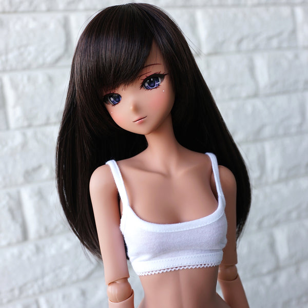 Smart Doll wigs are shaped by hand—not by mold—so variation is natural. You may notice differences in thickness, alignment, or shape from one wig to the next. Some may appear “balding” in spots or shed small amounts of hair when first opened and with continued use. Tight fits can leave marks on the head, and a bit of styling oil residue is also expected. (images 1 - 4)