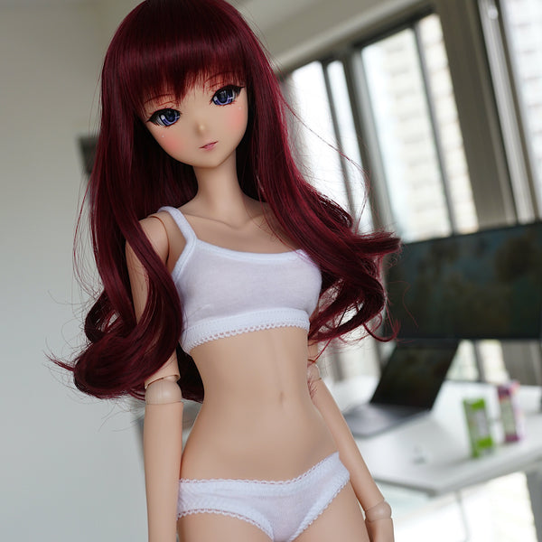 Smart Doll wigs are shaped by hand—not by mold—so variation is natural. You may notice differences in thickness, alignment, or shape from one wig to the next. Some may appear “balding” in spots or shed small amounts of hair when first opened and with continued use. Tight fits can leave marks on the head, and a bit of styling oil residue is also expected. (images 1 - 4)