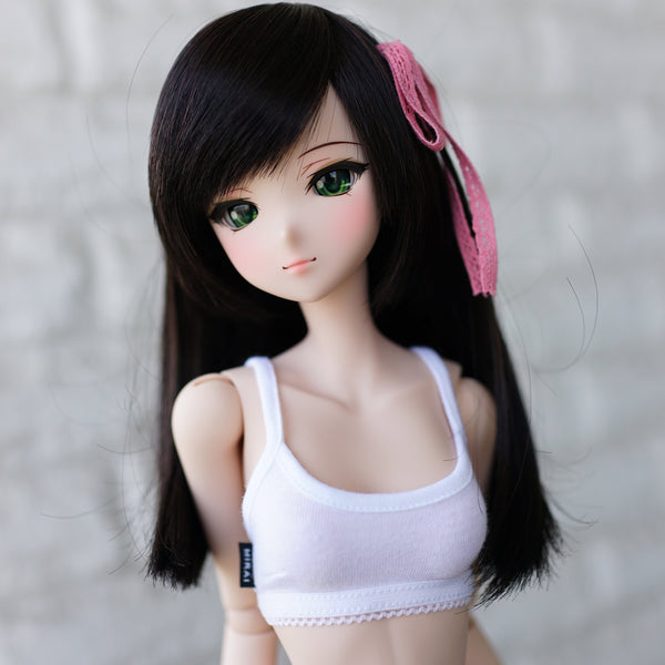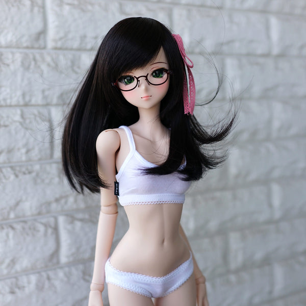Smart Doll wigs are shaped by hand—not by mold—so variation is natural. You may notice differences in thickness, alignment, or shape from one wig to the next. Some may appear “balding” in spots or shed small amounts of hair when first opened and with continued use. Tight fits can leave marks on the head, and a bit of styling oil residue is also expected. (images 1 - 4)