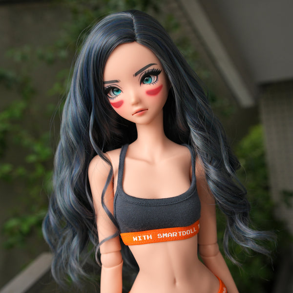 Smart Doll wigs are shaped by hand—not by mold—so variation is natural. You may notice differences in thickness, alignment, or shape from one wig to the next. Some may appear “balding” in spots or shed small amounts of hair when first opened and with continued use. Tight fits can leave marks on the head, and a bit of styling oil residue is also expected. (images 1 - 4)