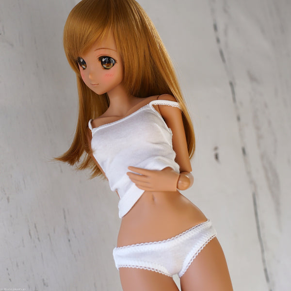 Mirai Suenaga (Tea color) comes with her default wig eyes (I feel silly saying that our dolls come with eyes but people actually ask), white camisole top & underwear together with the telescopic stand.