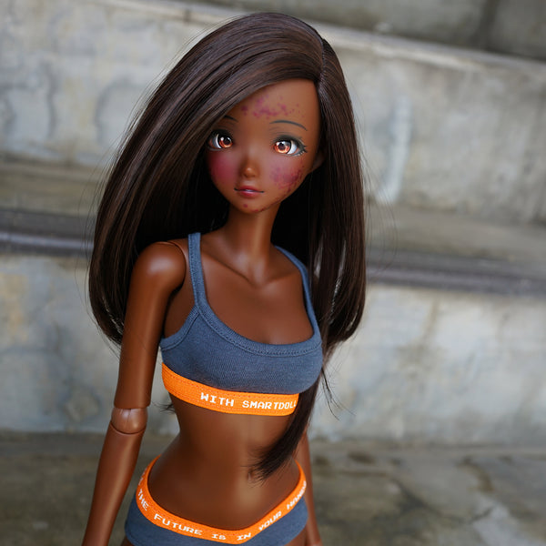 Just like real human faces, Smart Doll faces are intentionally asymmetrical. From the 3D sculpt to the final brush stroke, no two are exactly alike. Hand-painted features such as eyeliner, lashes, and blush will differ slightly in size, shape, and placement. If you’re seeking factory-perfect, machine-printed symmetry, a different brand may be a better fit. (images 9 - 12)