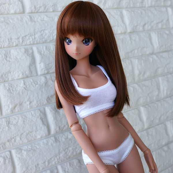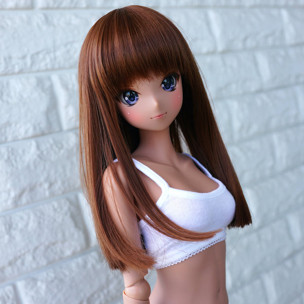 Sana is back - this time without the freckles but with a new look - Journey Eyes and a new wig that we call Medium Straight Mahogany.