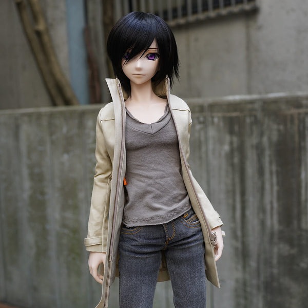 コートは前開きなので女の子にはどんなおっぱいサイズでもOKですが、このコートを男子に着せるのはスリム胸が必要です。なお、スリム胸でも下腕あたりは着せるときにはかなりきついです。