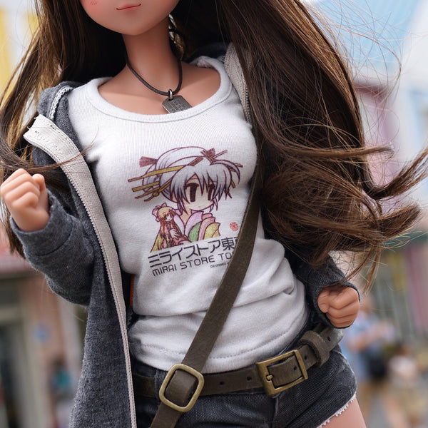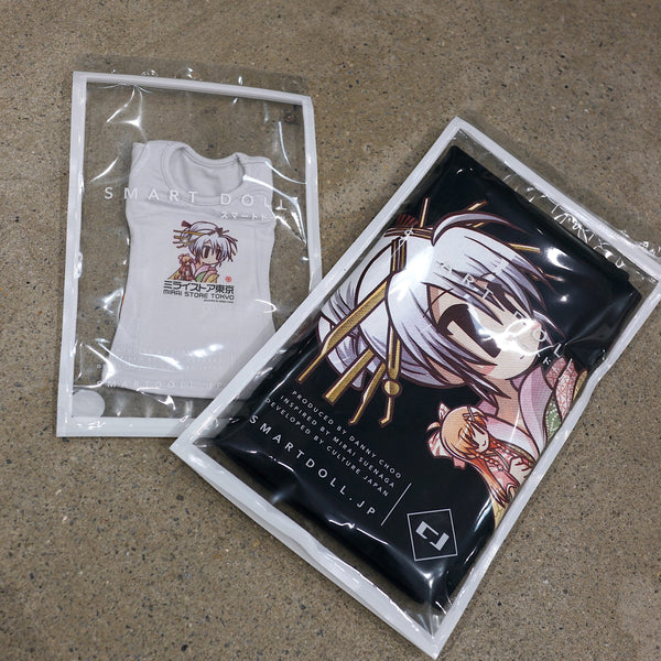 This is first of many Bundles to have human and Smart Doll items. This one contains 1 homo sapien sized T-Shirt Mirai Store (in Medium size only) and 1 Mirai Store tee to fit Smart Doll girls.