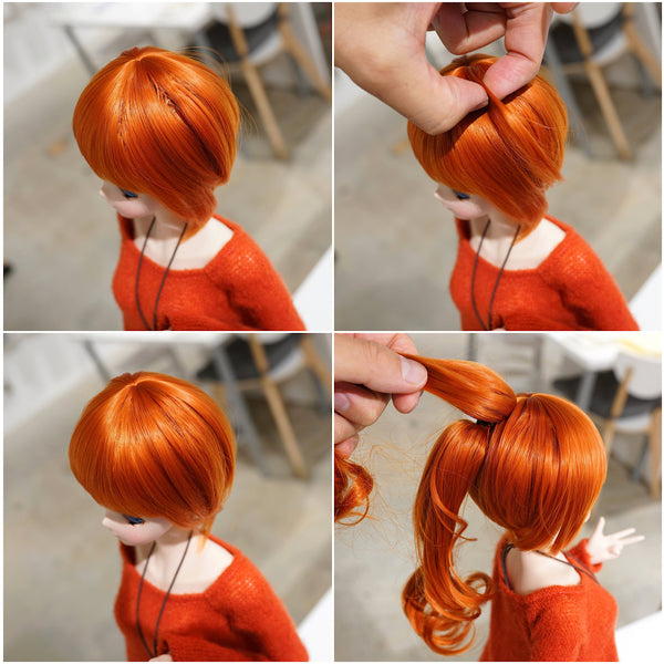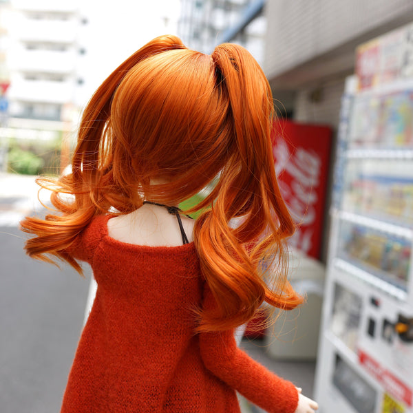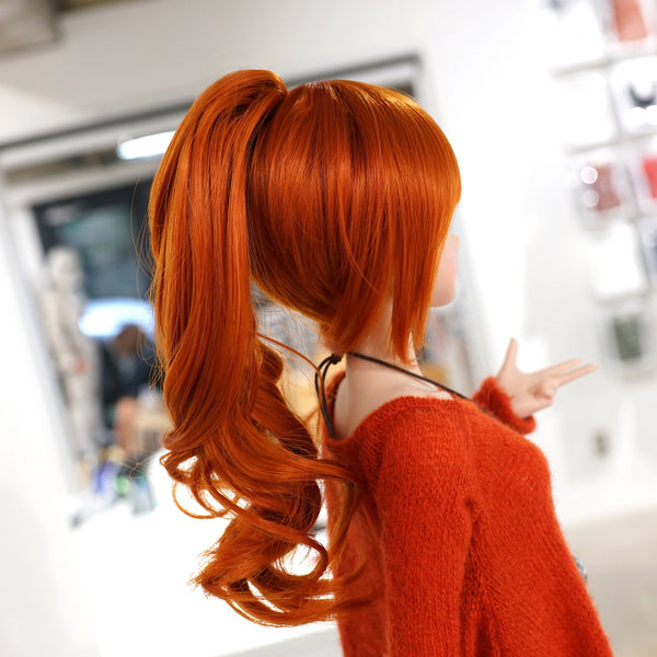 This is a variation of Haruka's wig which we call Twin Curl Sunset Orange. The pigtails can be removed from the side and clipped to the back to make a pony tail - if you stack them then you will get better volume. You can remove both pigtails to make a bob but it wasn't really designed to be one. You will need to straighten out the fibers with some steam where the clips are attached if you are moving the pigtails about - please read wig specs before buying.