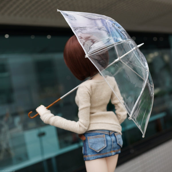 Perfect for a rainy day - transparent vinyl umbrella. The human versions are very popular in Japan and if you have used one then you will know that these brolleys have a knack of leaving crease marks when its folded - well we managed to replicate those marks with the Smart Doll sized one too!