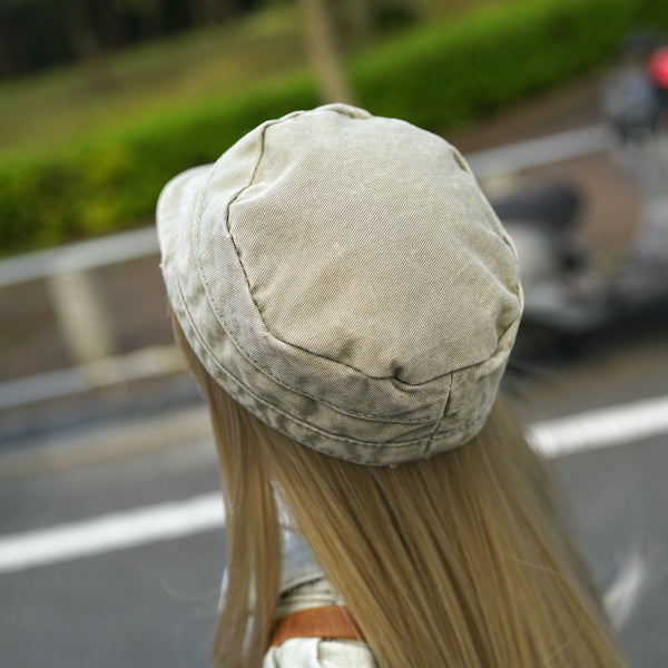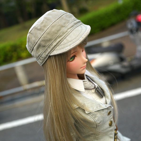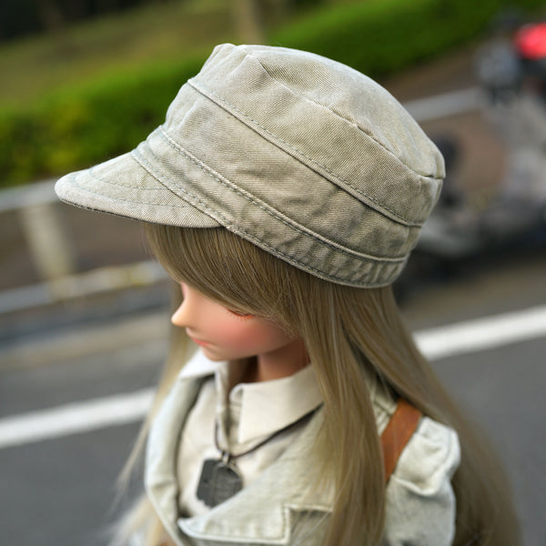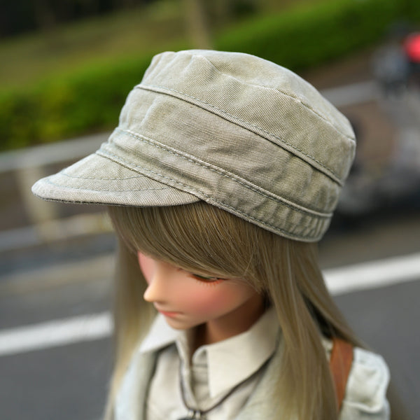 This is the pastel green version of the same hat. Please expect holes and loose threads and a non-uniform manner of weathering. The hats also help keep the hair reasonably tidy when stowing them away in a bag. This is a one size fits all - the fit will depend on which doll you have and what wig they are using at the time.