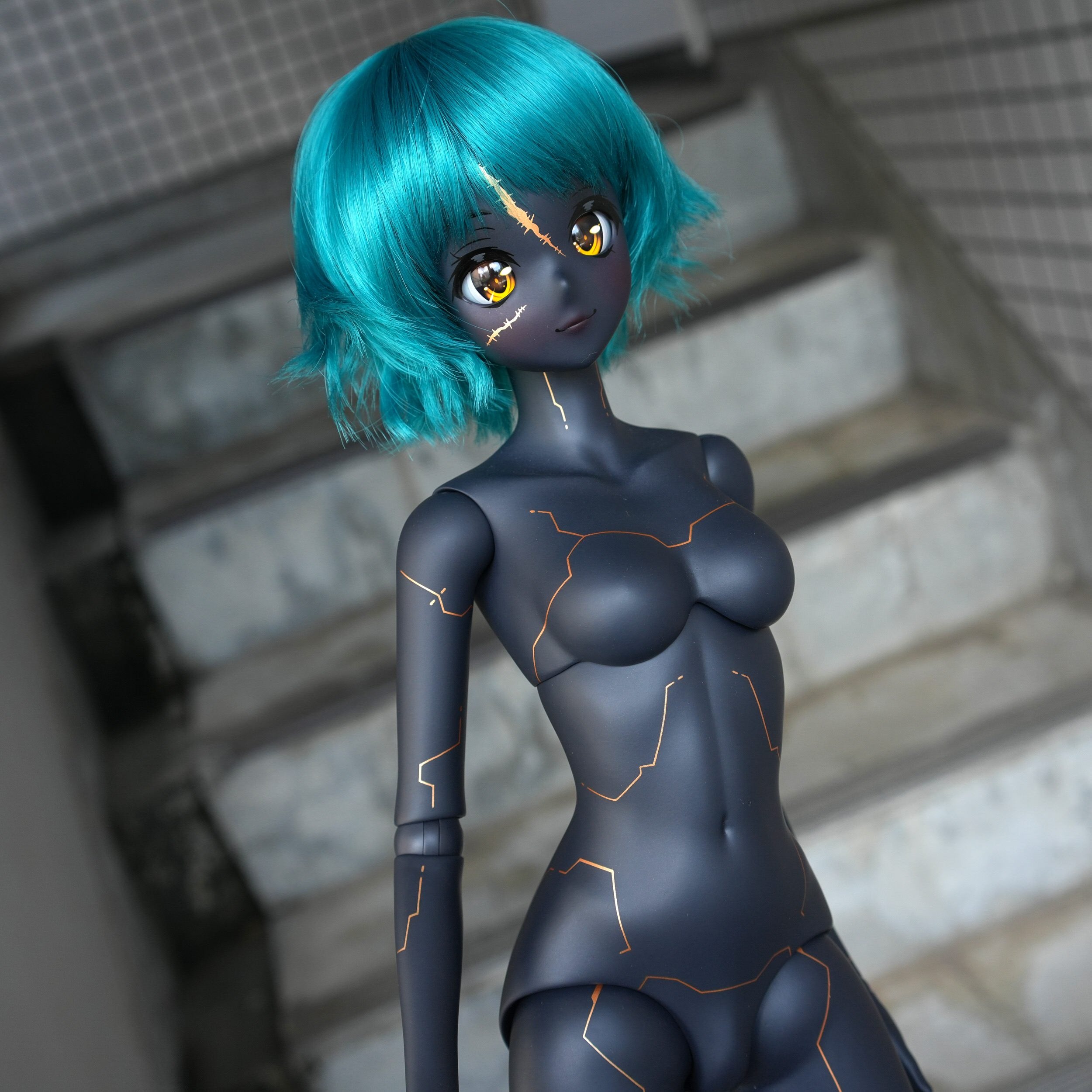 The Smart Doll body is made from sofubi (soft vinyl) using a hands-on process called slush casting. This naturally results in variations such as asymmetry, flow lines, air bubbles, and differences in surface texture. The head cap may not match the body color exactly or fit perfectly. These traits are inherent to working with soft vinyl and are part of the handcrafted nature of the product. (images 5 - 8)