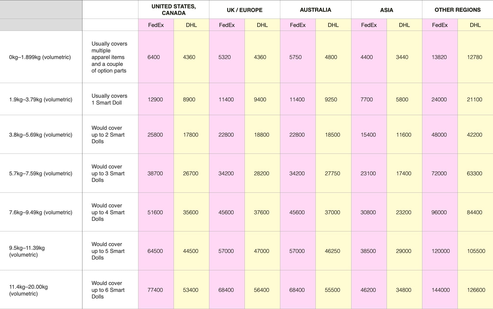 Shipping Fee Chart