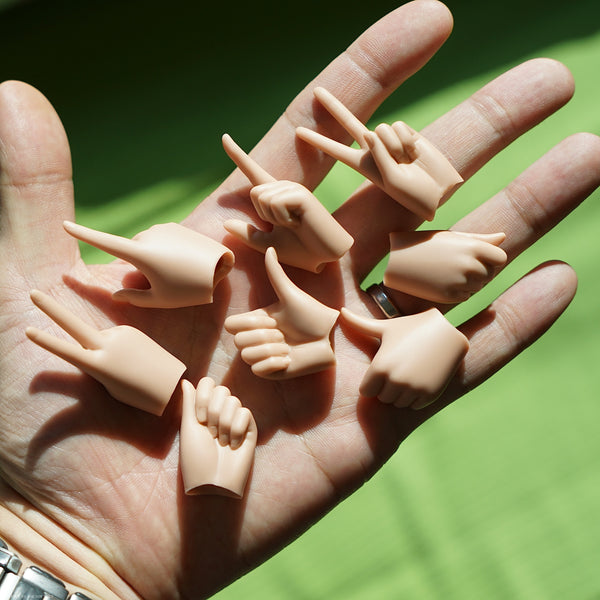 Option hand parts for Smart Doll girls which include "point" "peace" "clasp" and "thumbs up/down."