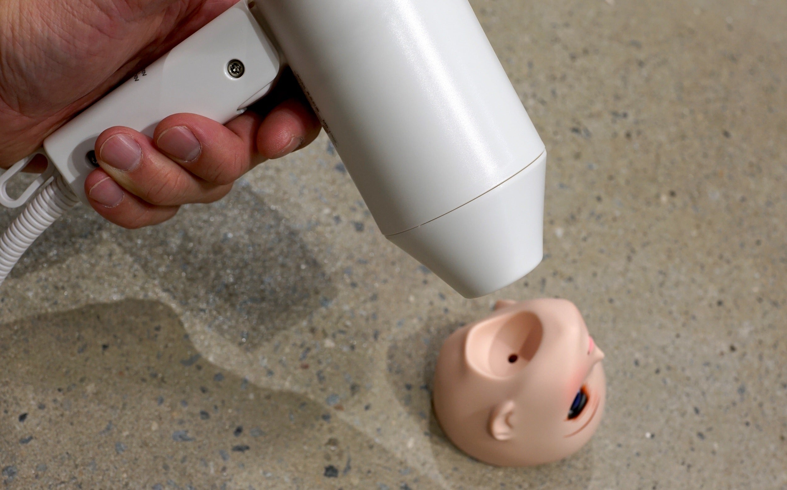 - Use a hairdryer to gently heat the neck hole area until the base of the head feels warm to the touch.