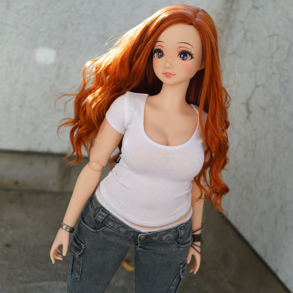 This piece looks particularly nice on the default Small bust, though it also pairs well with the Medium Smooth bust too. It's important to note, as with many of our snug-fitting tops, that wearing this T-shirt on busts larger than the default size can stretch the fabric. This might result in a saggy appearance if later worn on a smaller bust. While washing the tee in cold water can help shrink it back, be aware that it might end up slightly smaller than its original size.
