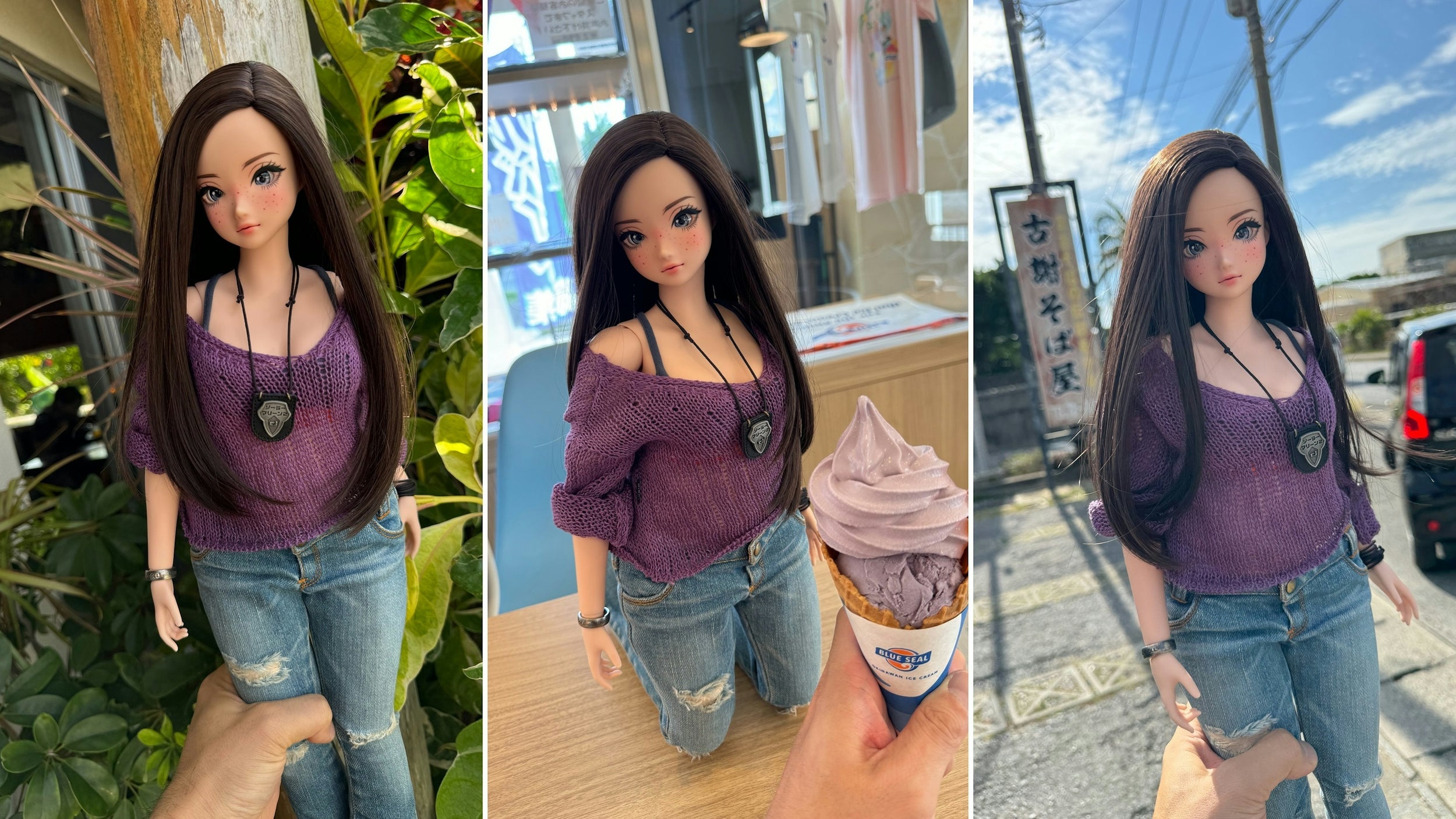 When seated, the thighs and buttocks may compress, creating a gap between the torso and thighs. This is normal and temporary. The vinyl typically resumes its shape once the doll is no longer seated, or a hairdryer can help reset it (image 7).
