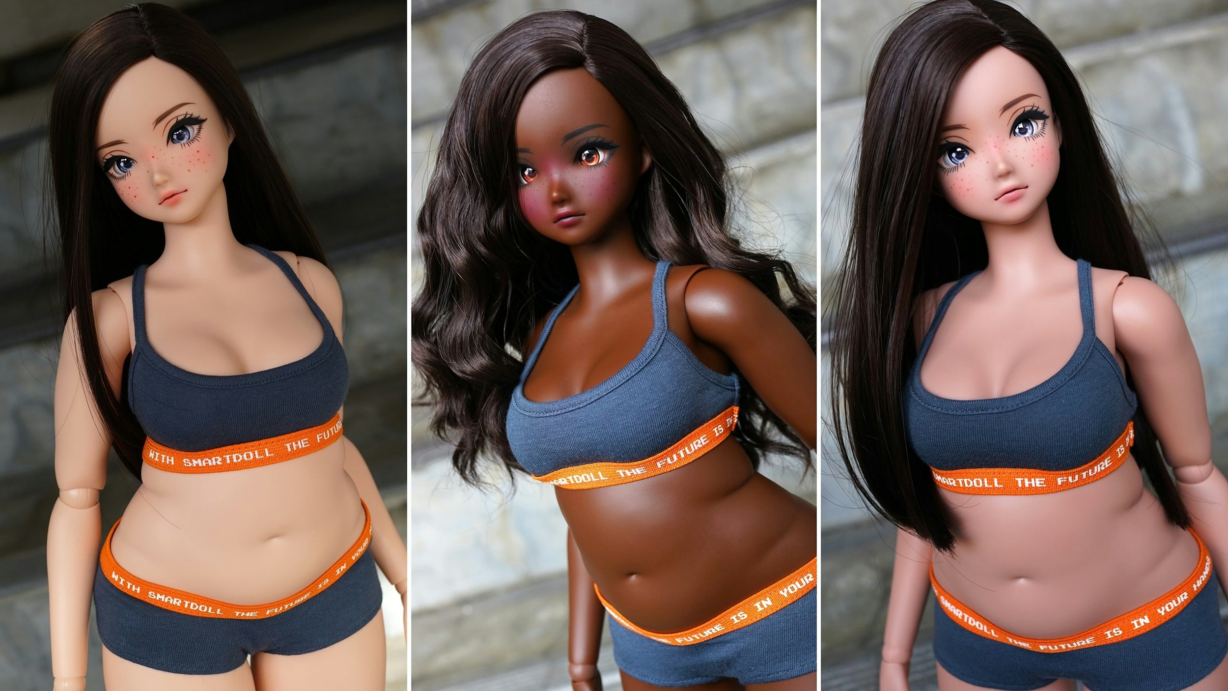 • The Pear body heads have a wider face, but the top of the head is the same as other Smart Dolls, so all existing wigs fit.