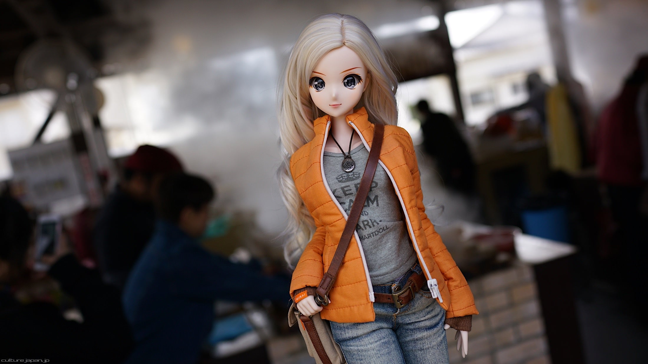 モコモコ感があり、スマードドール女の子達を可愛く旅の移動中包むいいアイテムだ。リブニット キャップとハンドウォーマーとよく似合います。