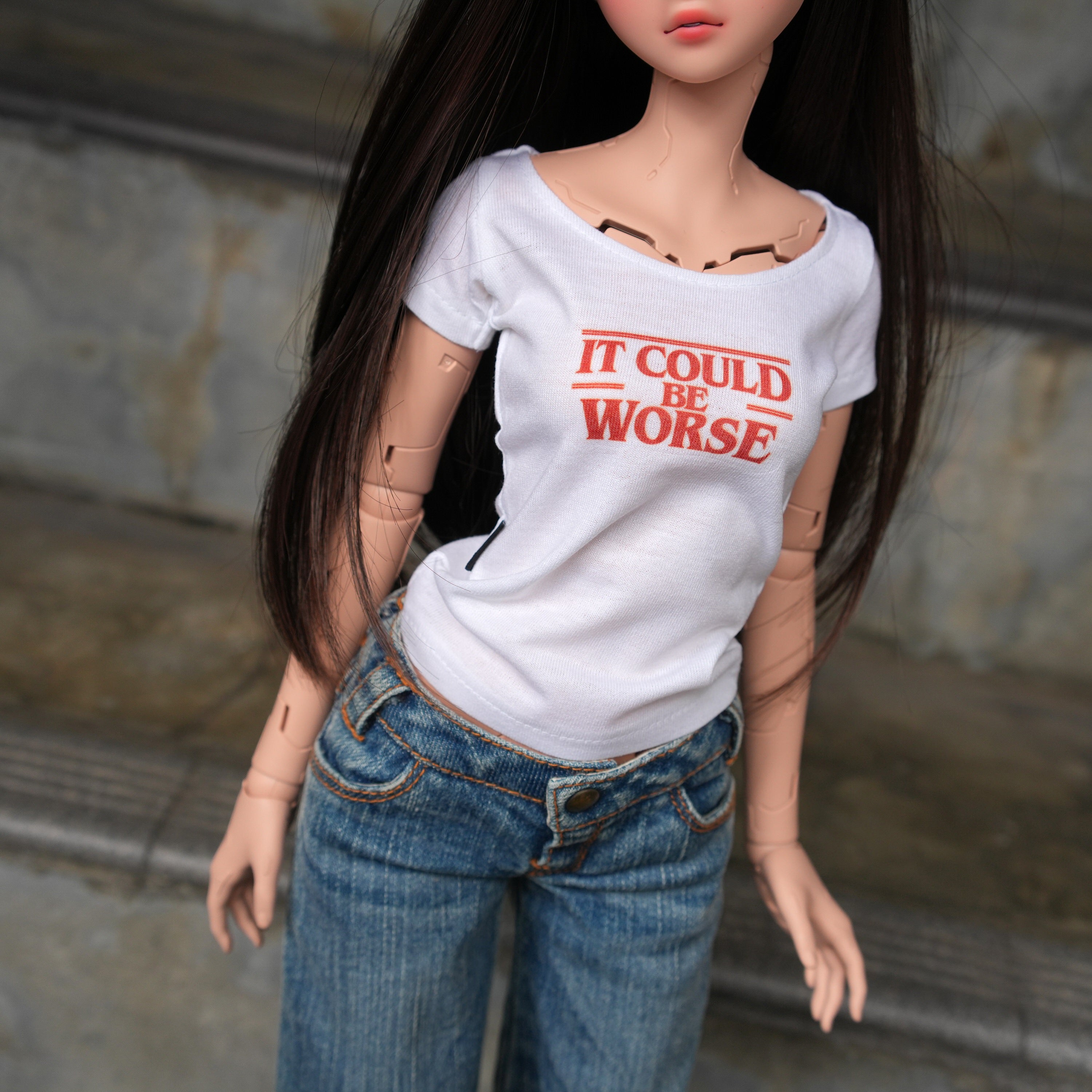 While some tees might not have perfectly centered graphics, a simple twist once on your Smart Doll can make it look just right (image 2 above).