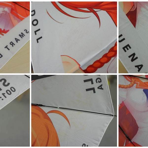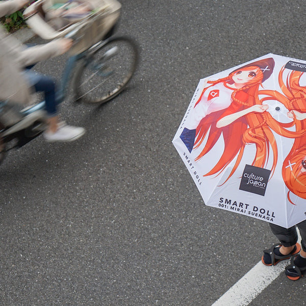 For many years I've been using prototypes of Mirai Suenaga umbrellas and I finally got round to making some for sale. I wanted rich colors for the print but the colors were so rich that there are slight blotches of color dotted around the material as you can see from some of the photos.